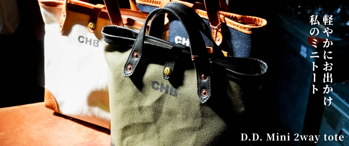 「デニムと本革」「帆布と本革」を組み合わせたコンパクトなトートバッグ。 手持ちだけでなく、斜めがけもできる2Wayタイプです。 デニムはシャトル織機で織り上げられたビンテージ感のある仕上がり。 確かな手触りと丈夫さで安心感があります。 前面のCHBの文字は工房で1つ1つシルクスクリーンプリントをしています。 文庫本・長財布・500mlペットボトルなどを立てて収納できるぐらいの高さがあります。 内側には内ポケットが1つあるので、スマホやミニ財布、小物などの収納に便利です。 ショルダーは軽量で扱いやすいアクリルテープを使用。 両手を空けたい時は肩に掛けて身軽に動けます。 カラビナで接続してるので、簡単に取り外し可能です。 底は革で補強しており、アクセントにもなっています。 デニム&帆布と革のコンビネーションが可愛らしい仕上がりです。 【サイズ】 幅:18.5cm(底)~26cm(天) 高さ:20.5cm マチ:11cm ショルダーストラップ 長さ:約130cm(最大時) 幅:2cm 【カラー】 デニム カーキ ホワイト 【D.D.について】 商品名の「D.D.」は「DOUBLE D WORKS」シリーズの略称です。 「DOUBLE D WORKS」はCRANKY.H.BIRDがお届けする、デニム(Denim)と帆布(Duck)を使用したシリーズとなります。 本革とは一味違う、アクティブ&カジュアルなスタイルをお楽しみください 【商品名】D.D. Mini 2way Tote 【カテゴリ】Bag 【素材】デニム・牛革・アクリルテープ 【生産】日本 【注意事項】 革は人の肌のように一つとして同じものは存在しません。天然皮革を使用しておりますので、シワやシミが稀にございます。また、色落ち、色移り等、お取扱いにはご注意下さい。 お使いのブラウザによって画像と色合いが異なる場合がございます。 【配送】 ご注文より2営業日以内に発送いたします。 発送はゆうパックとなります。(日時指定可) 【返品】 ・不良品がございましたら商品到着後速やかにご連絡をお願いいたします。商品に欠陥がある場合を除き、返品には応じかねますのでご了承くださいませ。 ・返品期間は商品到着後7日以内とさせていただきます。 ・お客様都合による返品につきましては返品の送料はお客様のご負担とさせていただきます。不良品に該当する場合は当方で負担いたします。