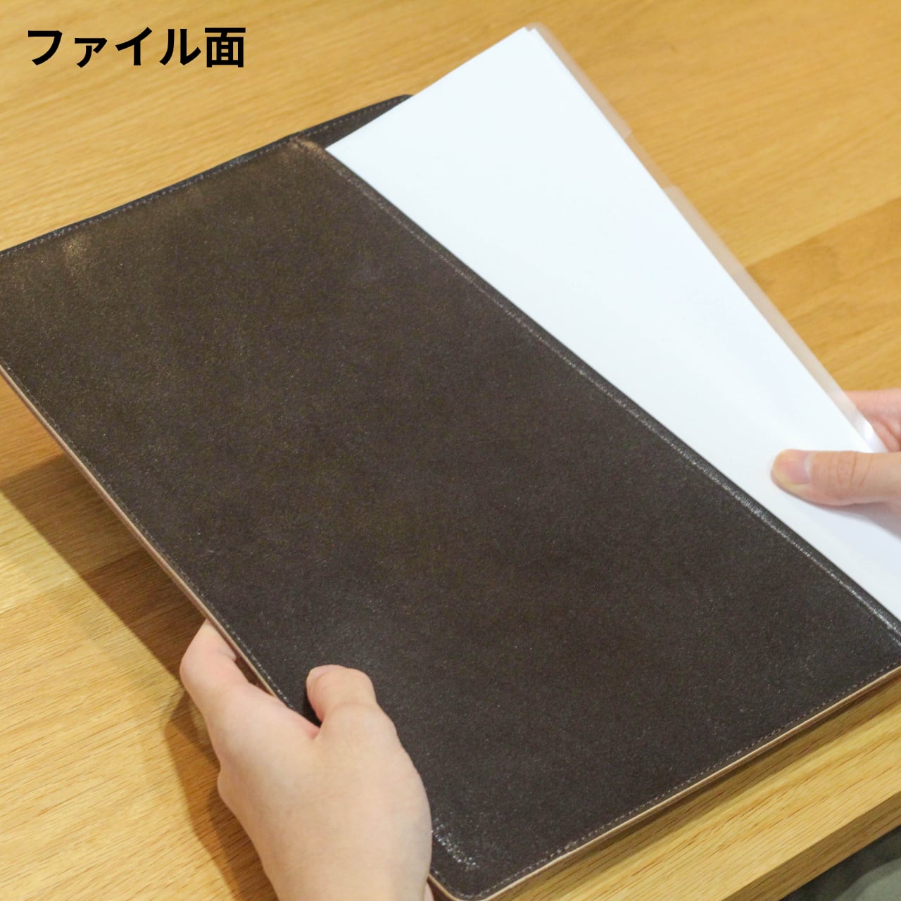 片面は書類を差し込むファイル形式、もう片面はマグネット式バインダー形式というハイブリッド仕様。仕事の場面や資料の受け渡しなど、自由に使いかえてスマートに対応できます。