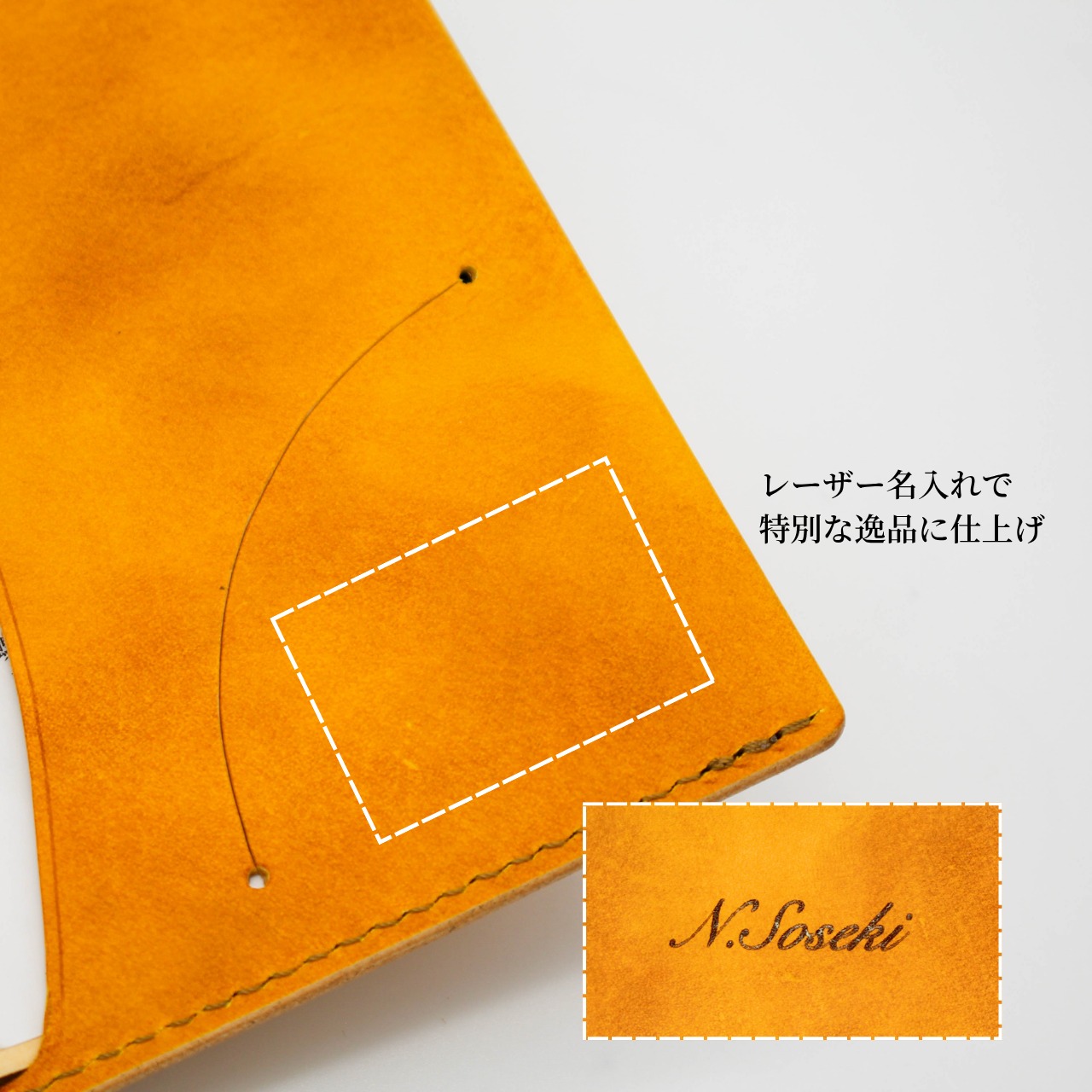 さらに、カバー右下にはレーザーによる名入れが可能。