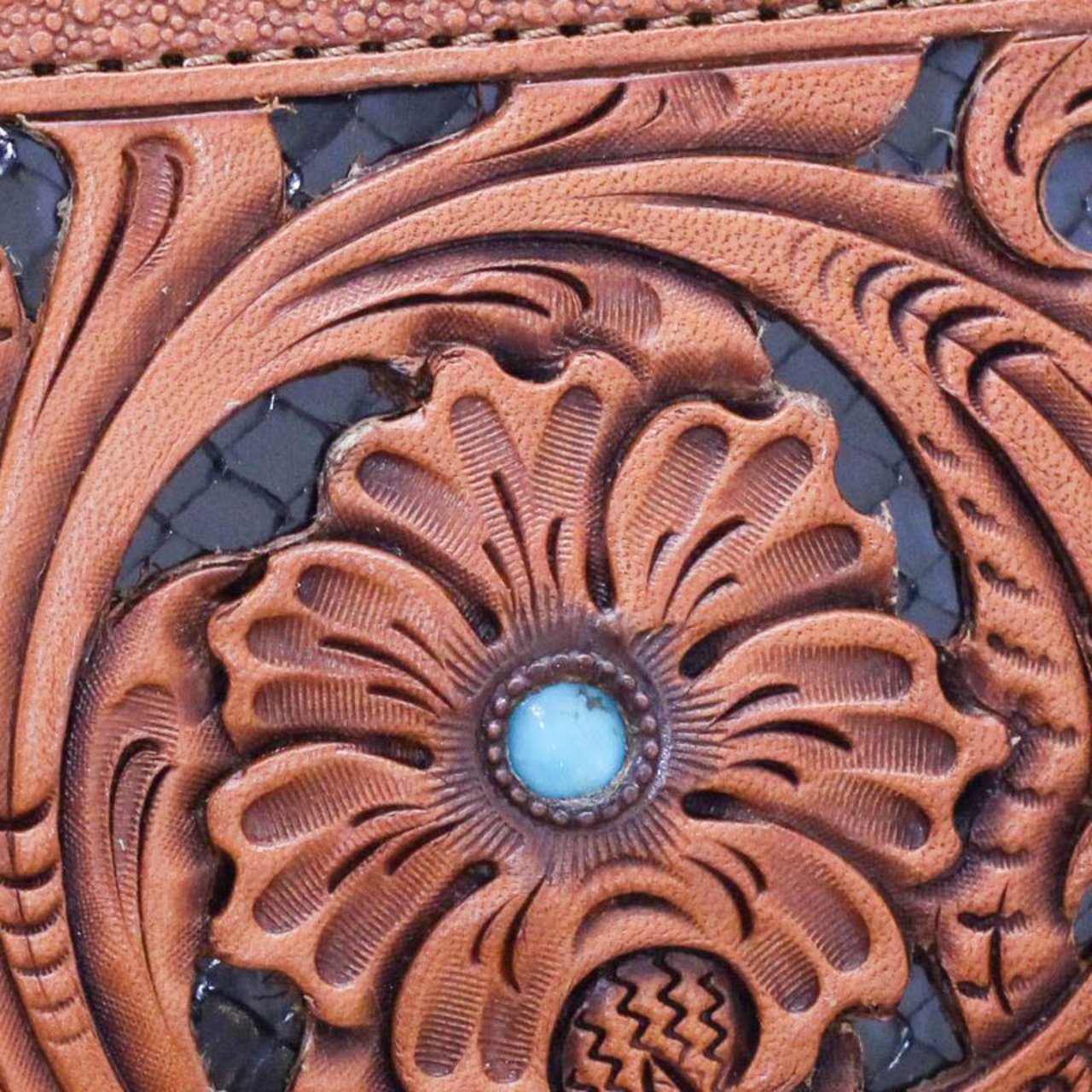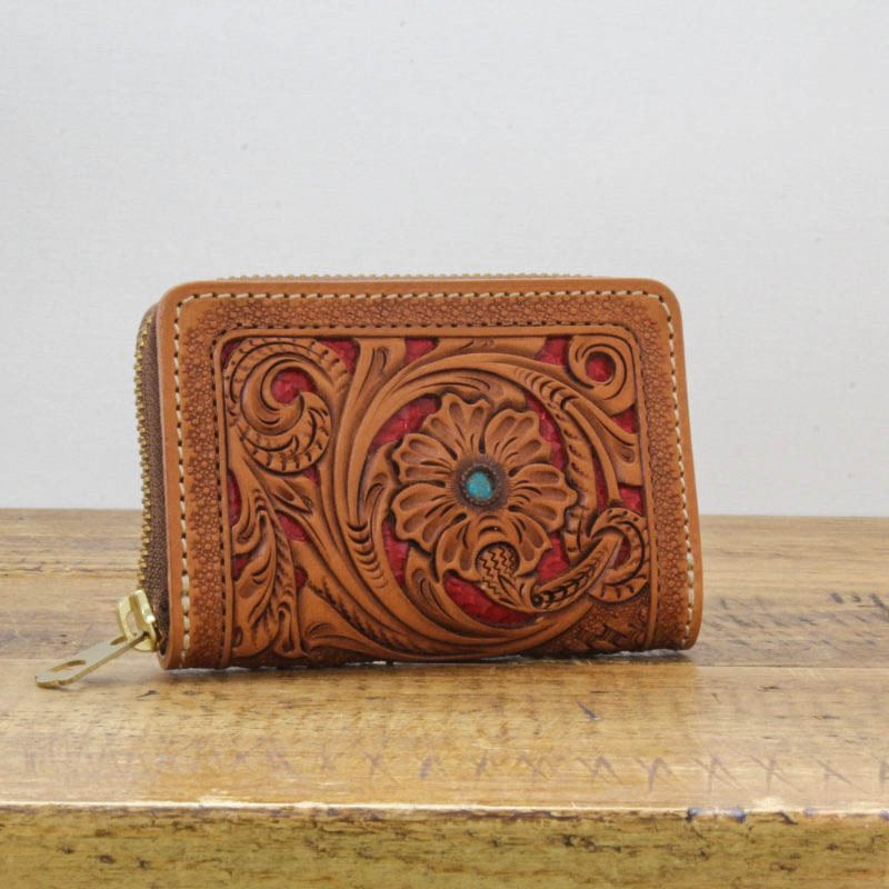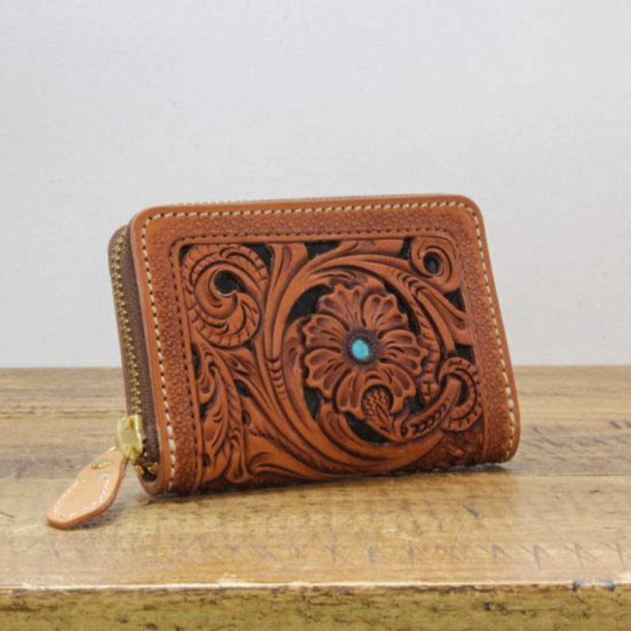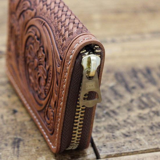 USAハーマンオーク社のヌメ革にカービングとバスケットのコンビネーションを施しています。