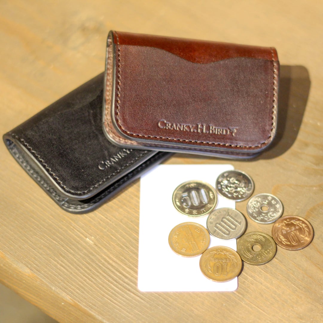 コインが取り出しやすい大口開口で、背面にはカードが入るポケットも配置しています。