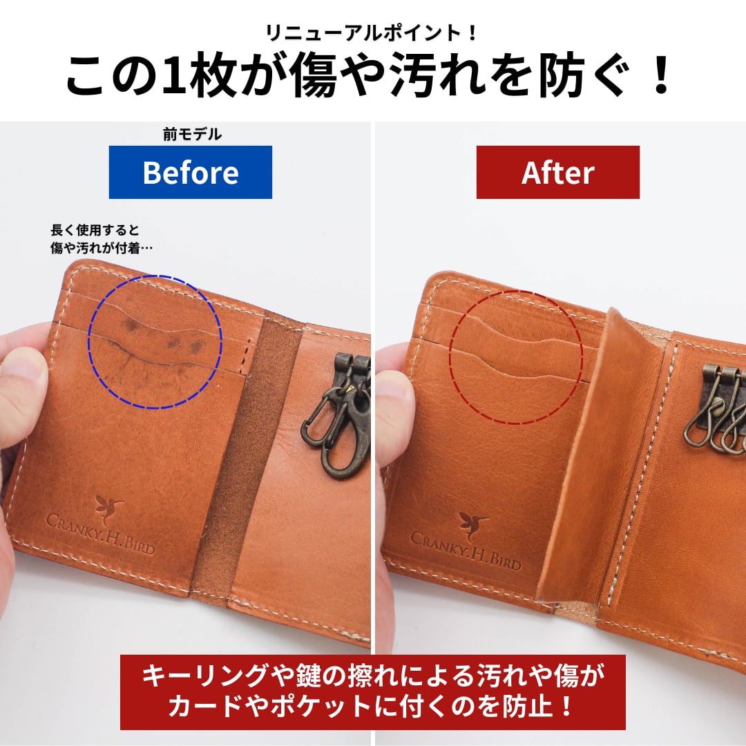 これによりキーリングや鍵の擦れによる汚れや傷からカードやポケットを守ることができます。