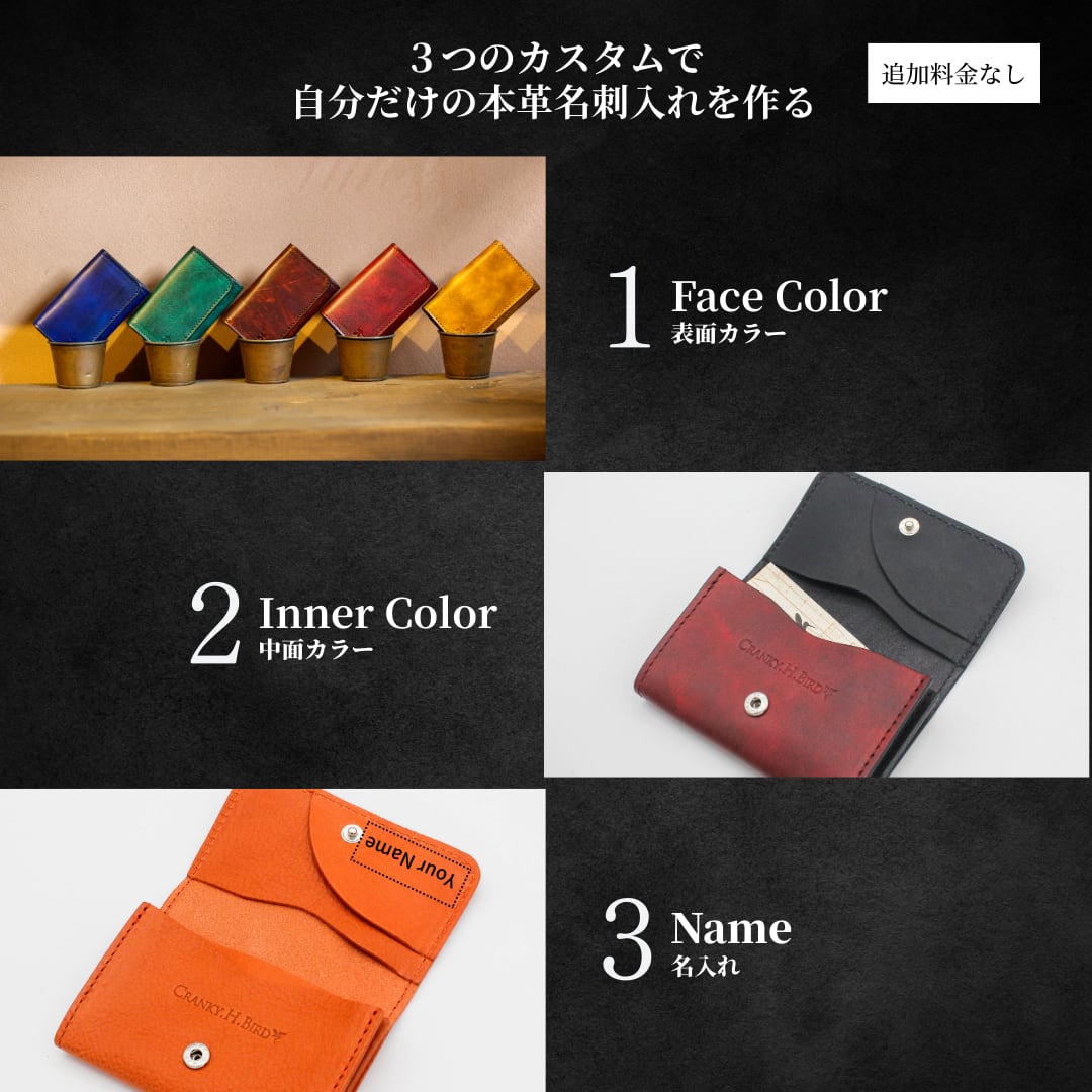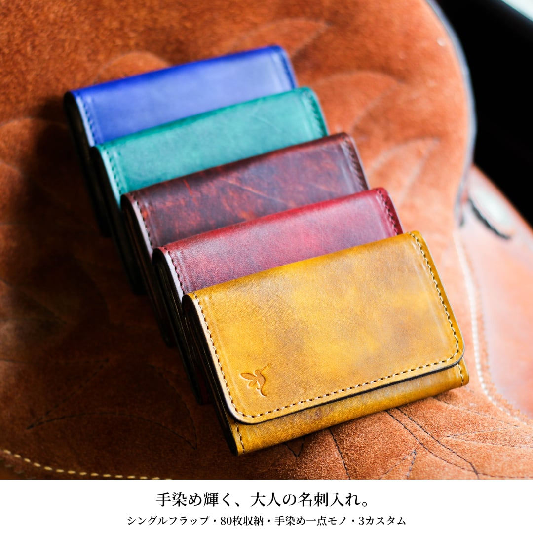 この名刺入れは、職人が手作業で一点ずつ染め上げています。