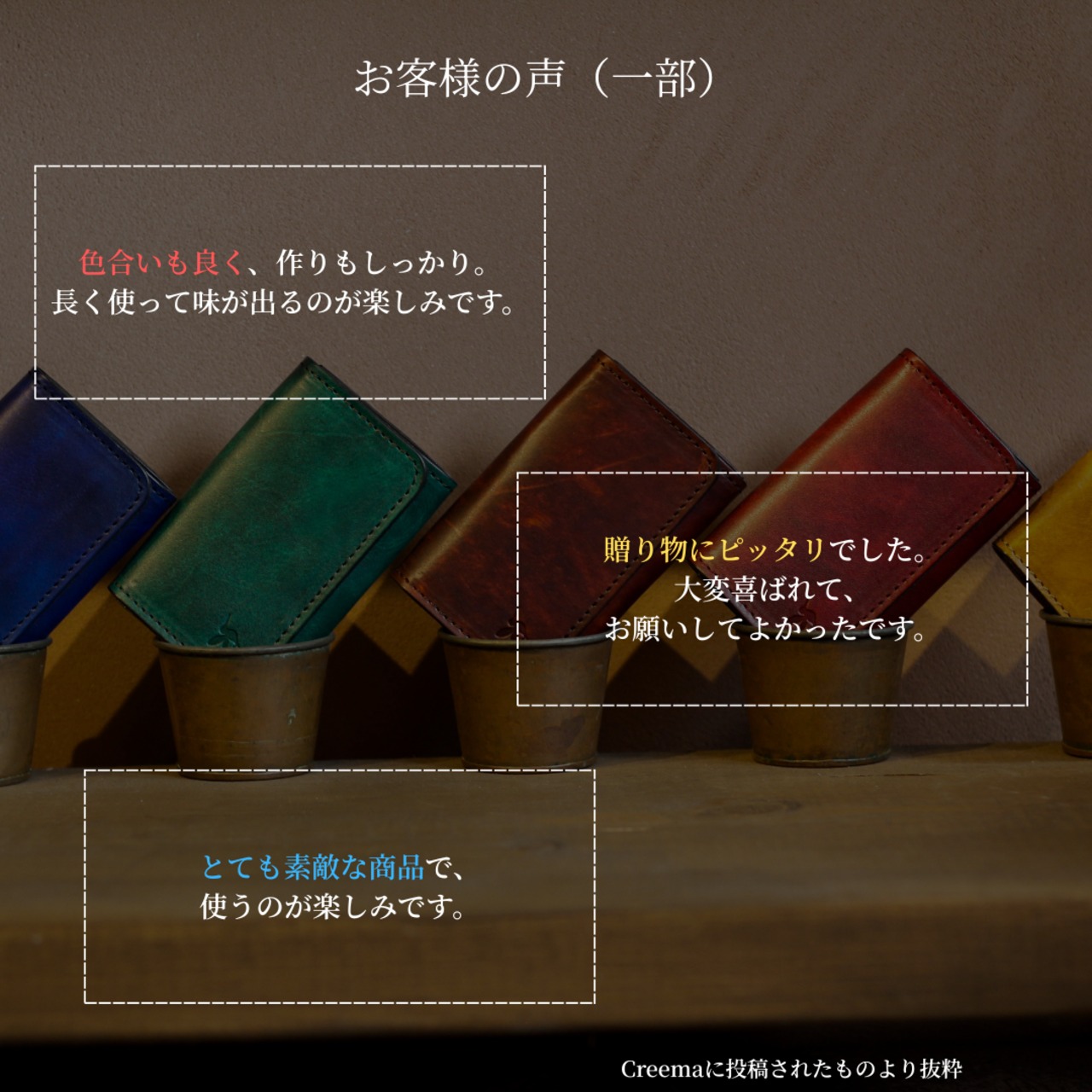 革は人の肌のように一つとして同じものは存在しません。天然皮革を使用しておりますので、シワやシミが稀にございます。また、色落ち、色移り等、お取扱いにはご注意下さい。