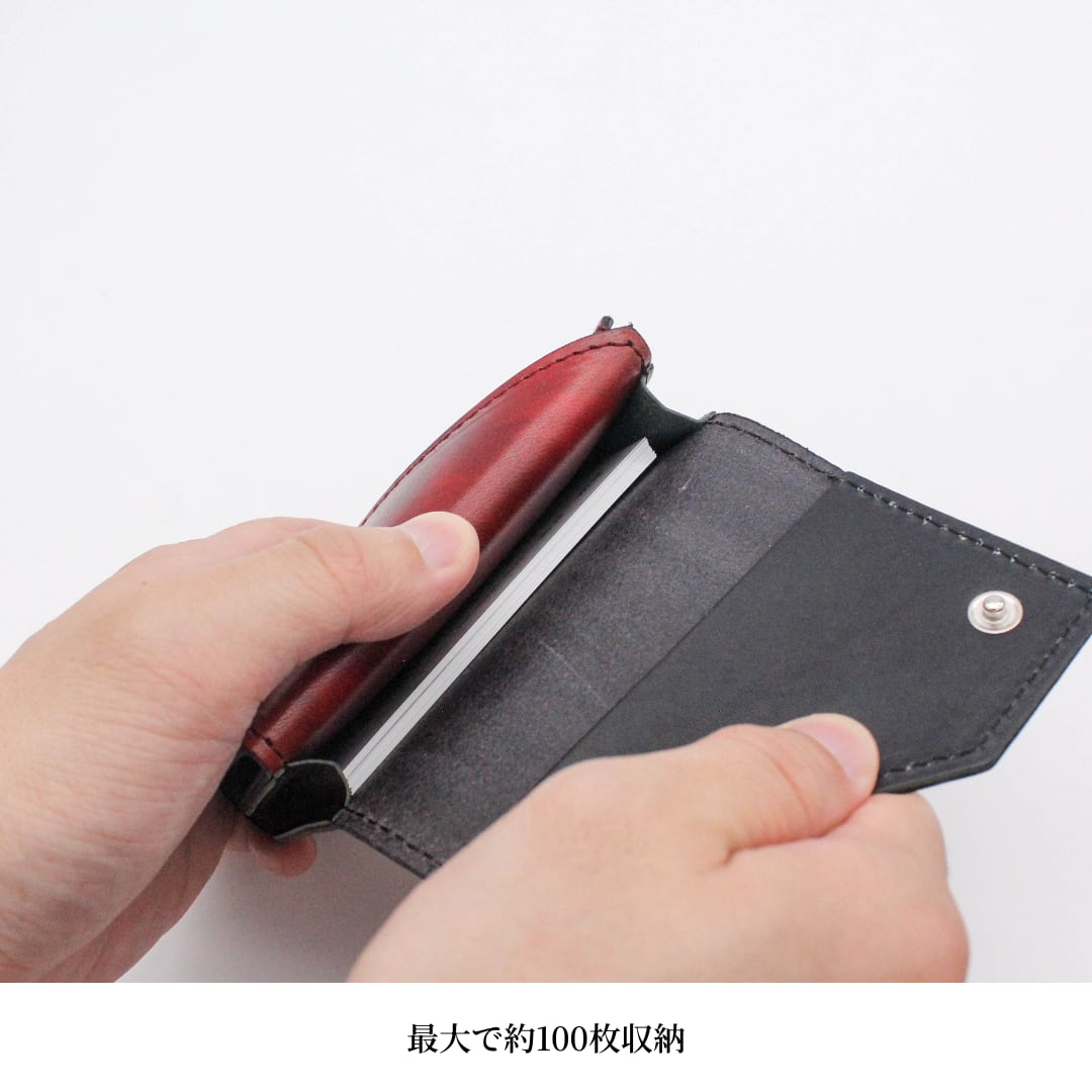 この名刺入れは、職人が手作業で一点ずつ染め上げています。