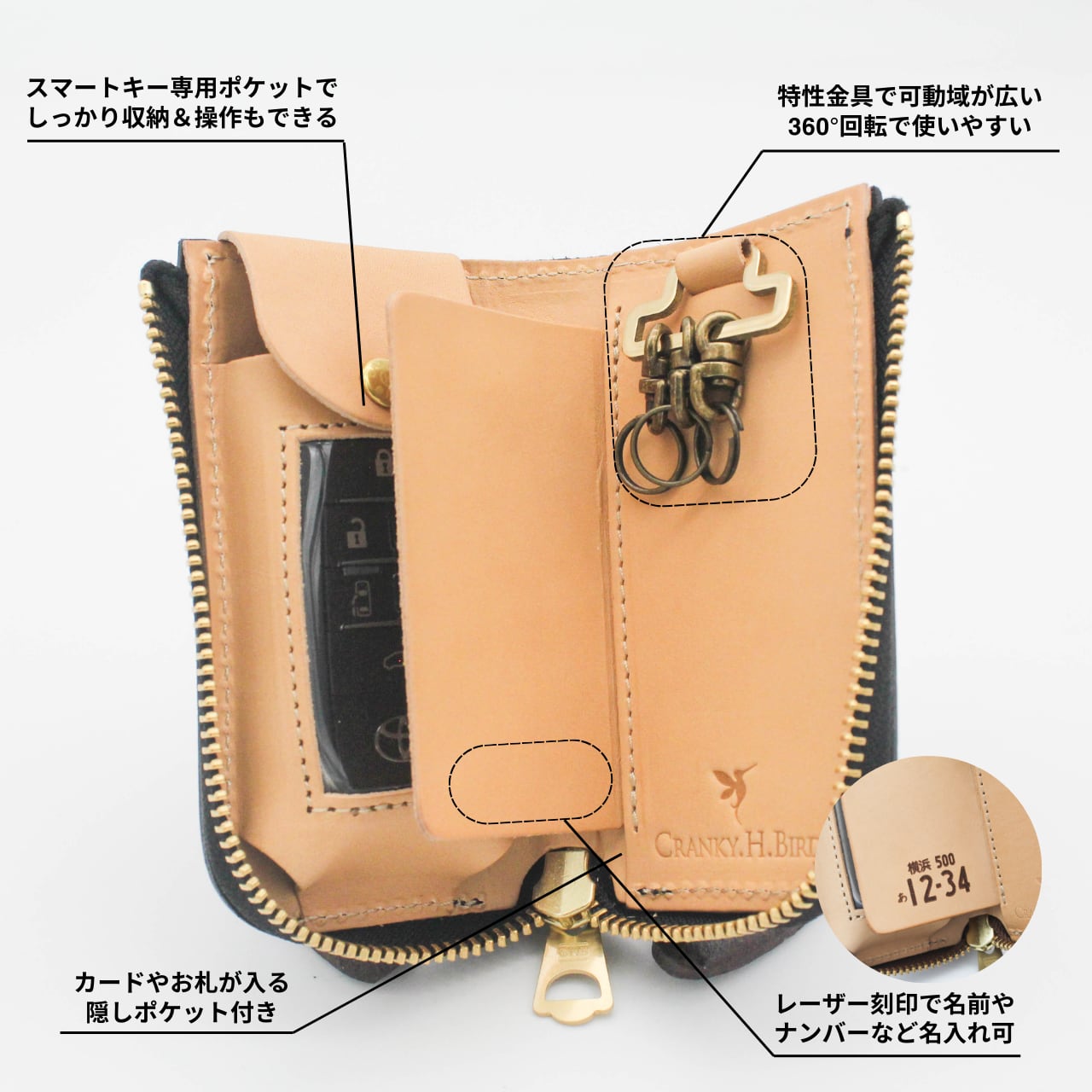 スマートキー・その他キー・お札やカードの収納ができる本革キーケース"GROUND(グラウンド)"